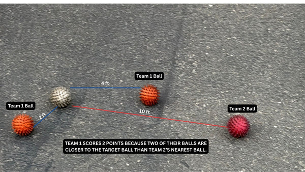 The team with the ball closest to the peyton scores. They get one point for each of their balls that is closer to the peyton than the opponent’s closest ball.