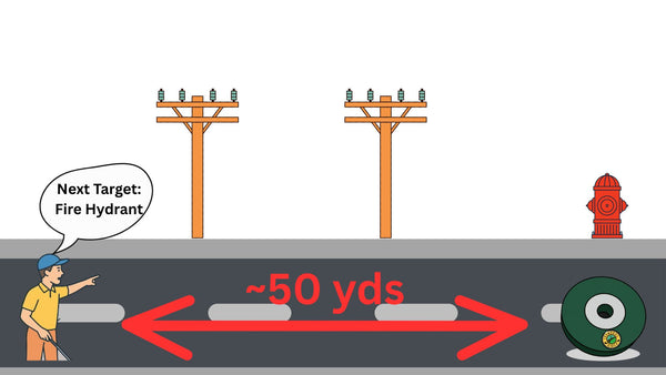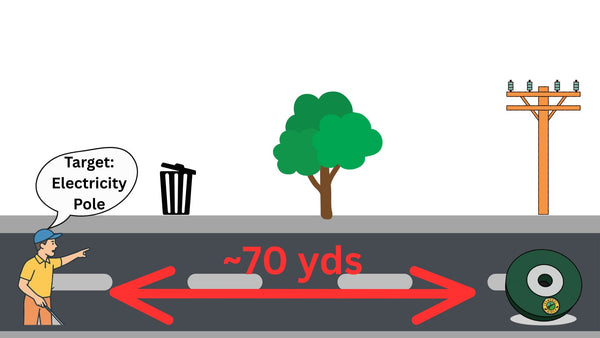One player calls out a landmark down the street (light pole, parked car, tree, etc.) and describes the approximate distance and direction from that landmark to where the hole should be placed.